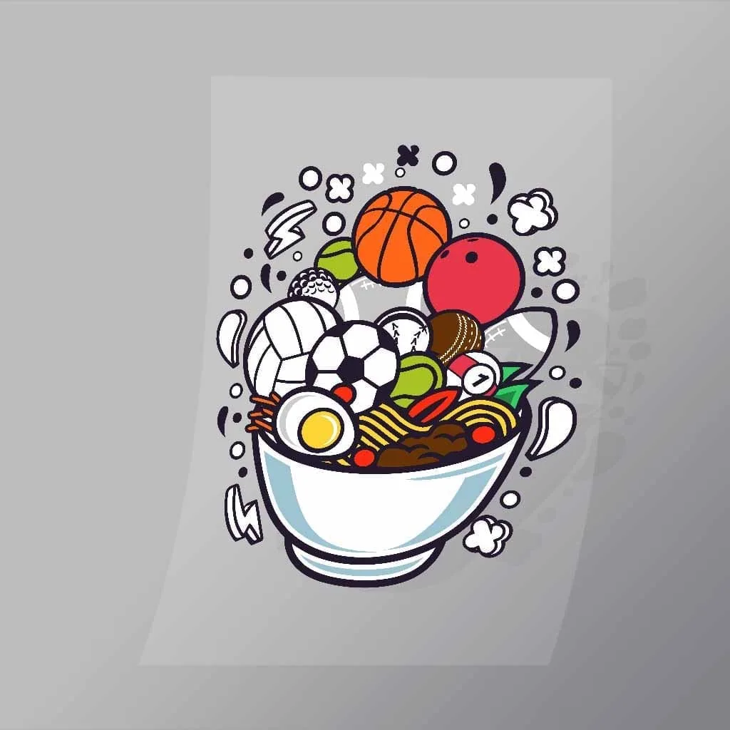 A great Ramen Sports DTF (Direct to Film) Transfer available in multiple sizes. (Beased on width at artwork aspect ratio)