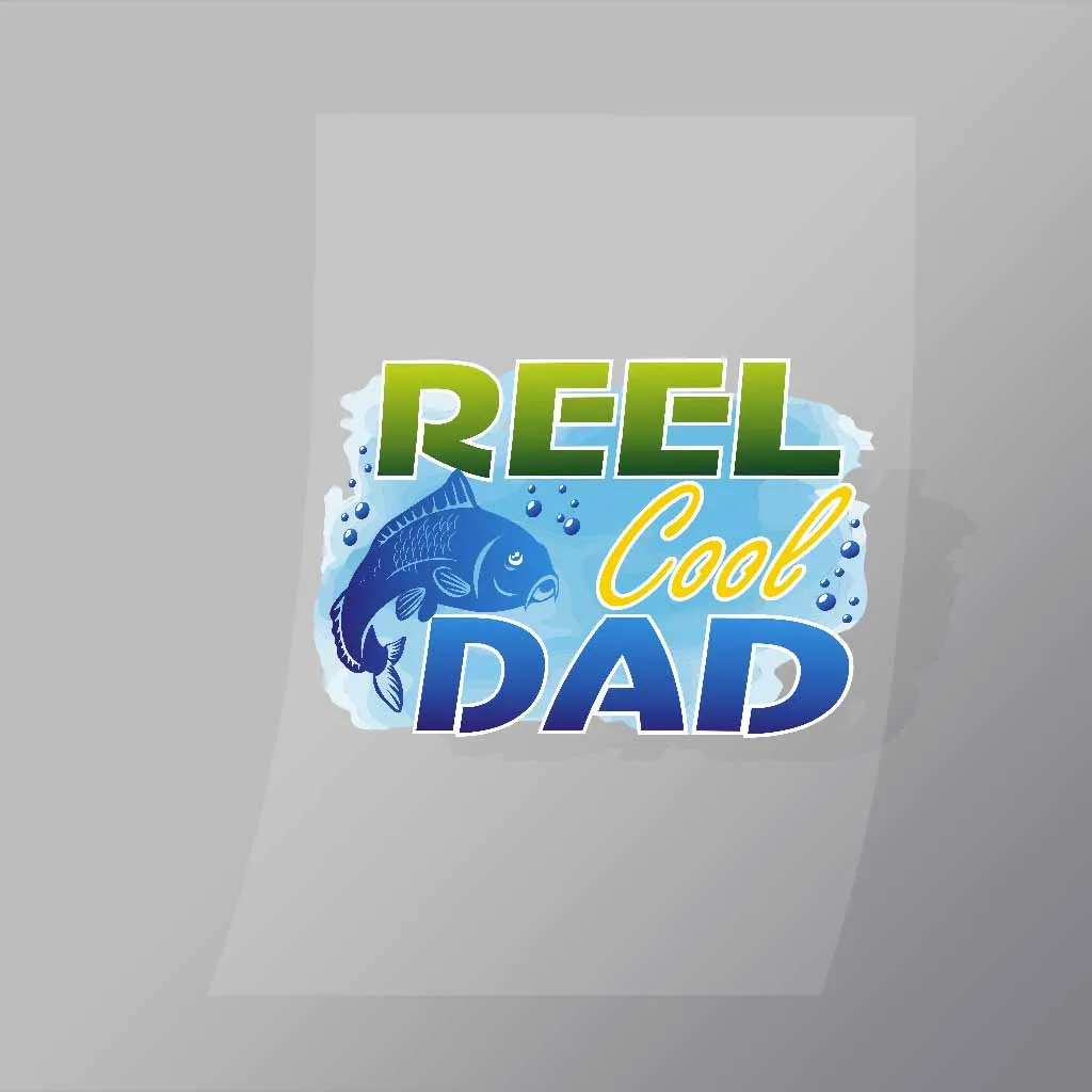 A great Reel Cool Dad DTF (Direct to Film) Transfer available in multiple sizes. (Beased on width at artwork aspect ratio)