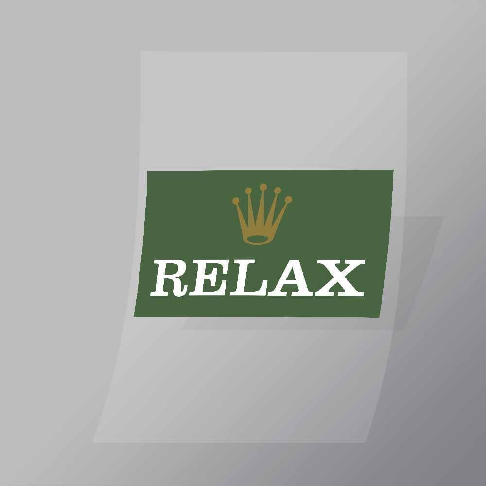 A great Relax Brand Spoof DTF (Direct to Film) Transfer available in multiple sizes. (Beased on width at artwork aspect ratio)