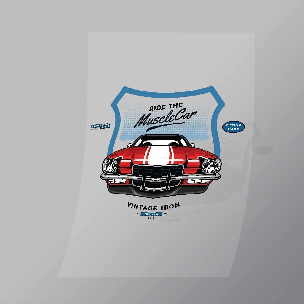 A great Ride The Muscle Car DTF (Direct to Film) Transfer available in multiple sizes. (Beased on width at artwork aspect ratio)