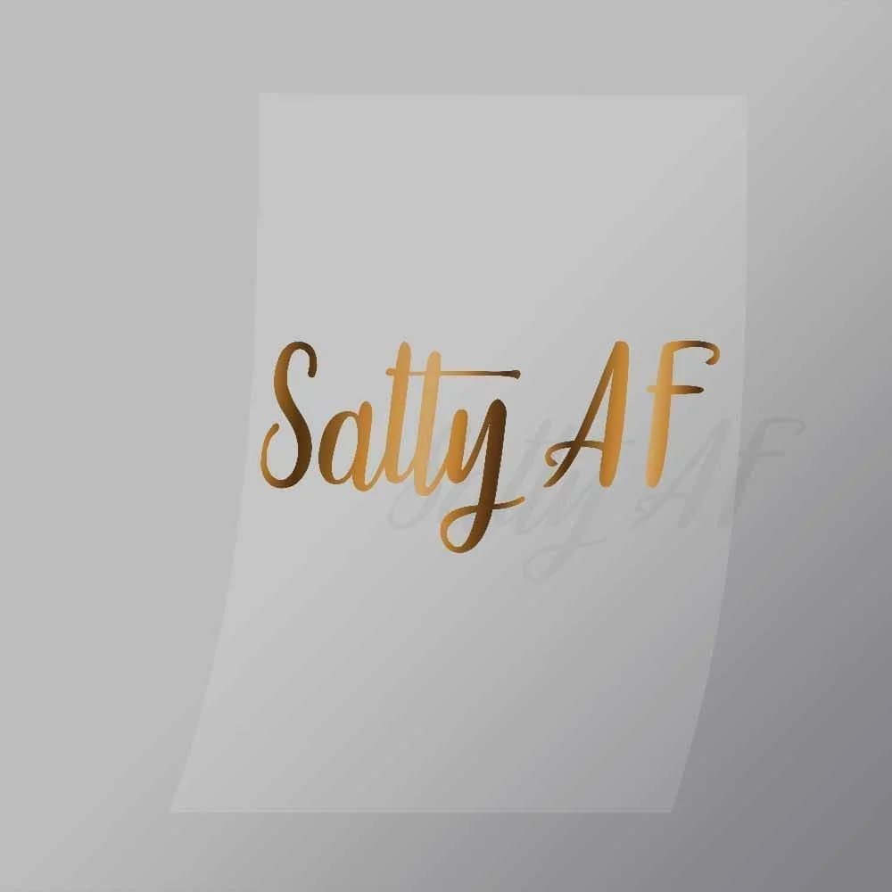 A great Salty Af DTF (Direct to Film) Transfer available in multiple sizes. (Beased on width at artwork aspect ratio)