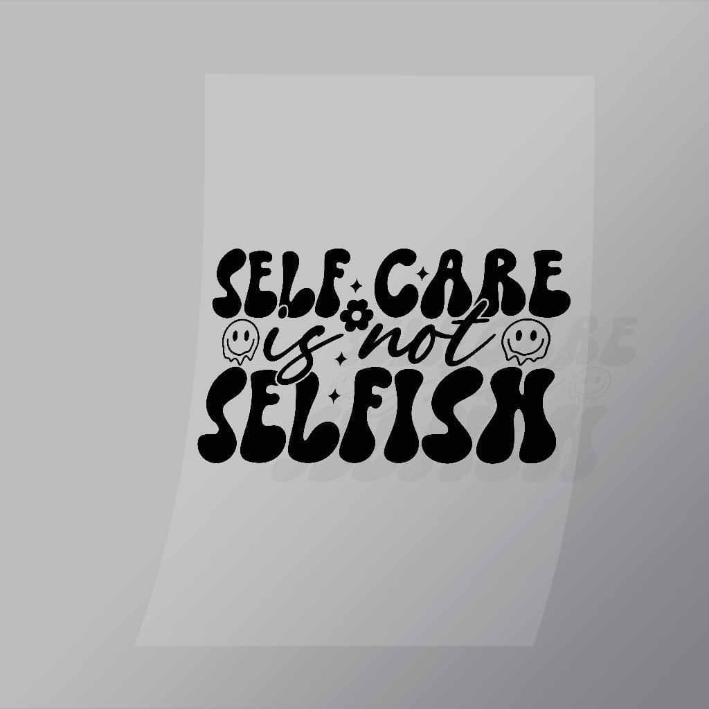 A great Self Care Is Not Selfish DTF (Direct to Film) Transfer available in multiple sizes. (Beased on width at artwork aspect ratio)