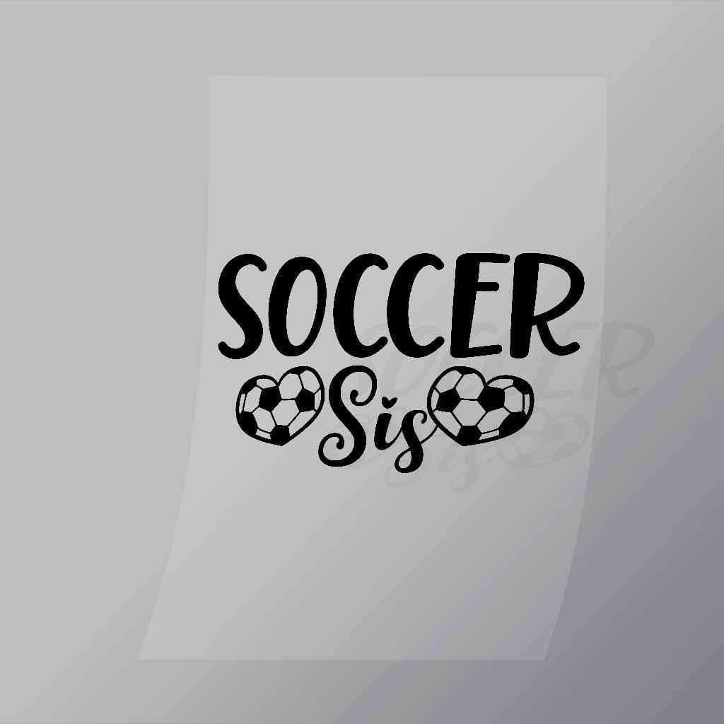 A great Soccer Sis DTF (Direct to Film) Transfer available in multiple sizes. (Beased on width at artwork aspect ratio)
