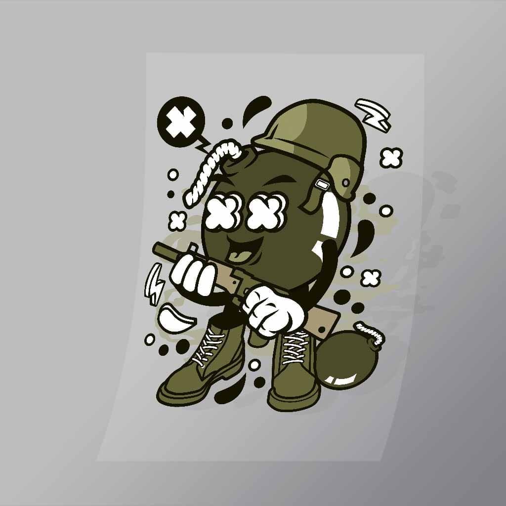 A great Soldier Bomb DTF (Direct to Film) Transfer available in multiple sizes. (Beased on width at artwork aspect ratio)