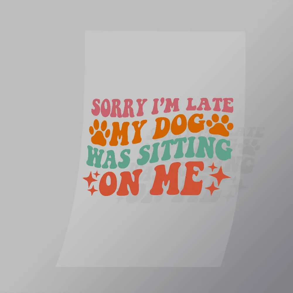 Sorry Im Late My Dog Was Sitting On Me DTF Apparel Transfer