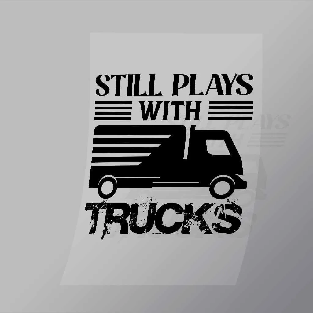 A great Still Plays With Trucks DTF (Direct to Film) Transfer available in multiple sizes. (Beased on width at artwork aspect ratio)