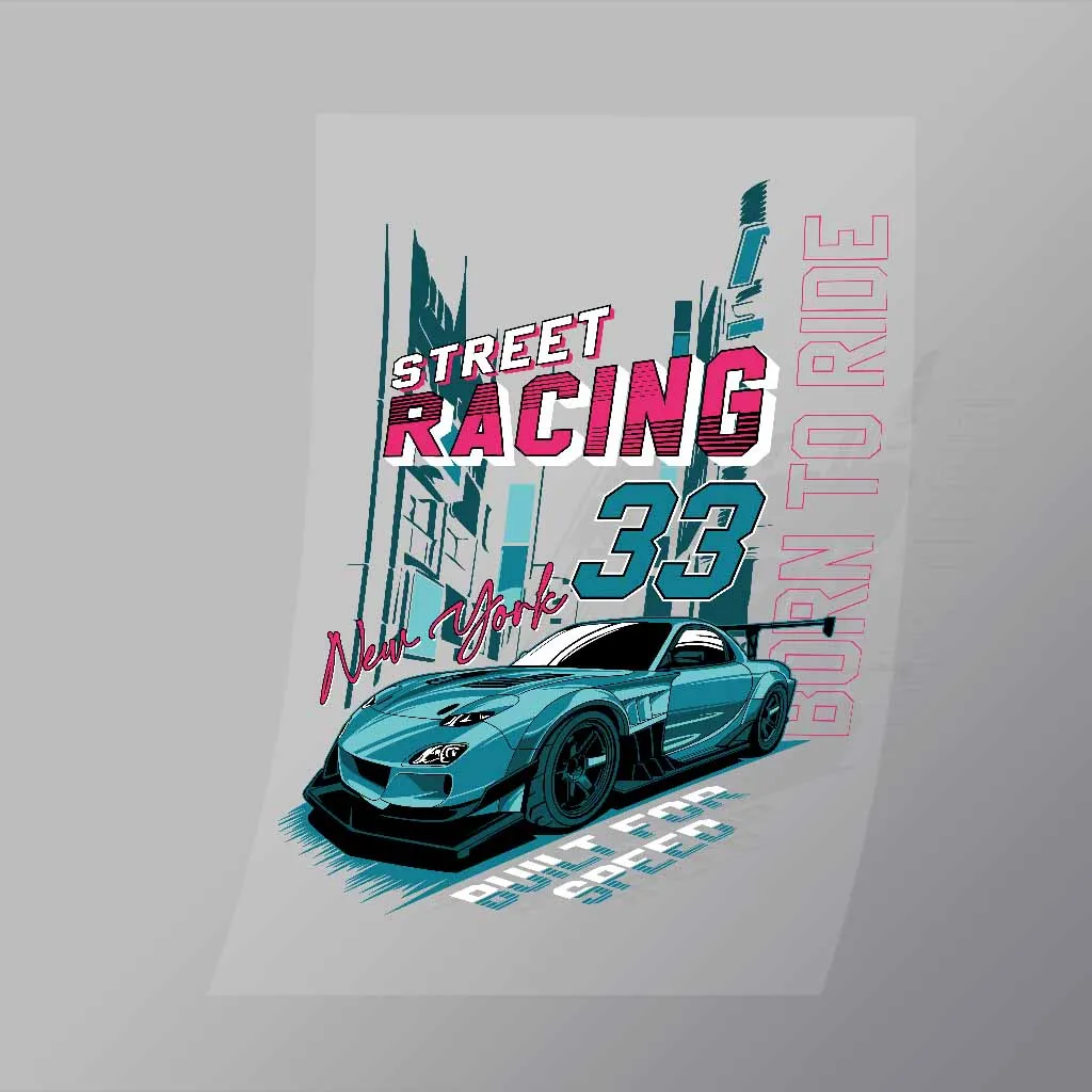 A great Street Racing New York 33 DTF (Direct to Film) Transfer available in multiple sizes. (Beased on width at artwork aspect ratio)