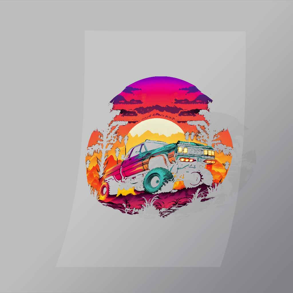 DCMT0001 Sunset Monster Truck 1 Direct To Film Transfer Mock Up