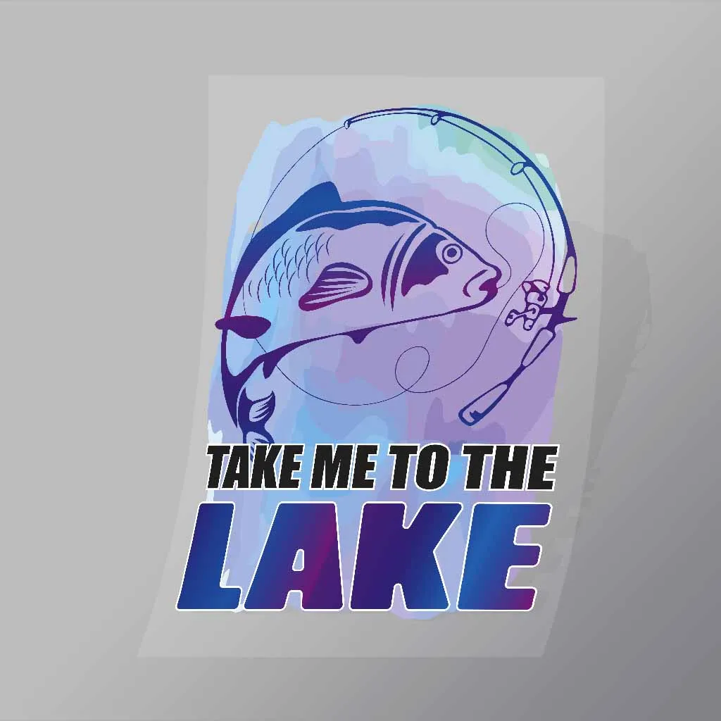 A great Take Me To The Lake DTF (Direct to Film) Transfer available in multiple sizes. (Beased on width at artwork aspect ratio)