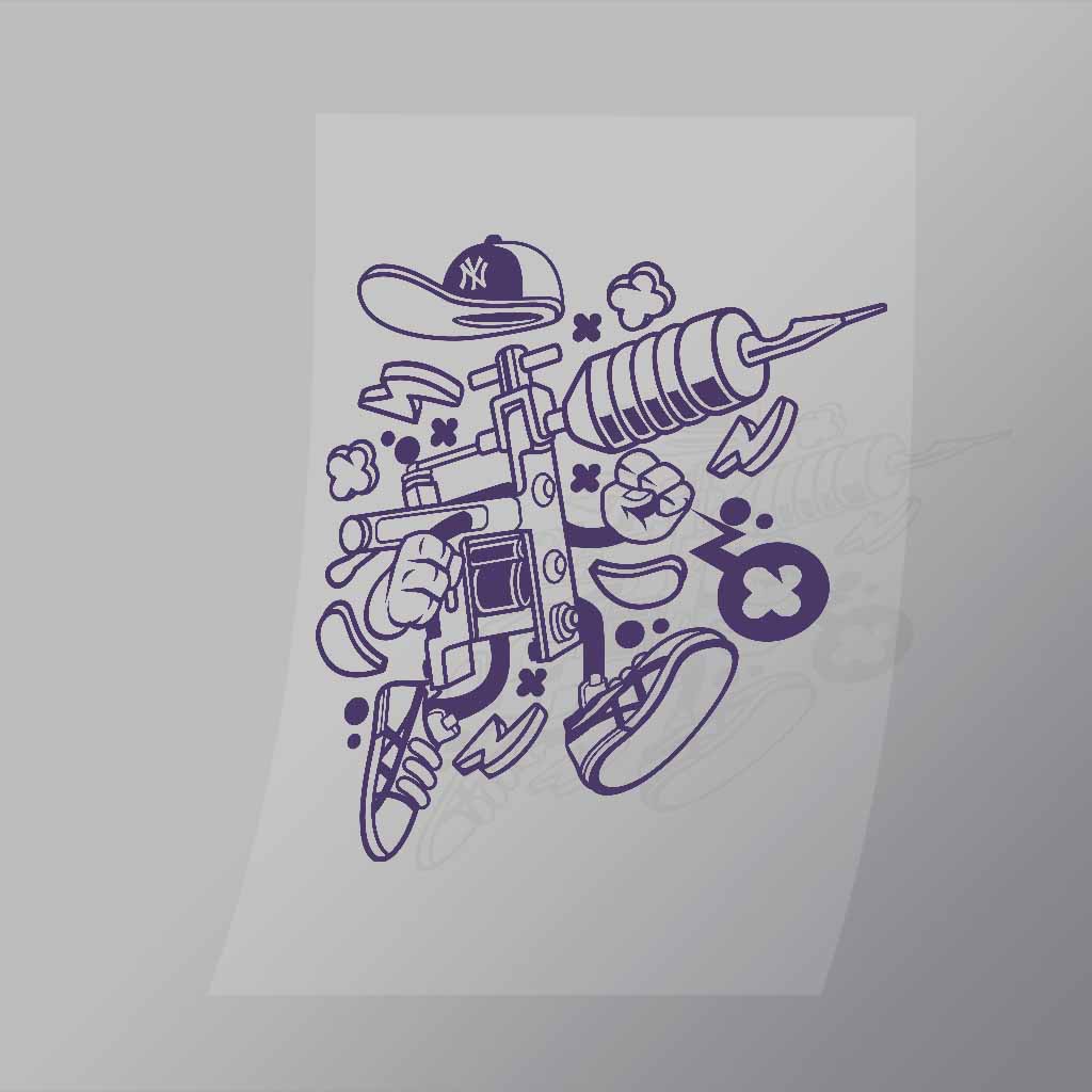 A great Tattoo Machine DTF (Direct to Film) Transfer available in multiple sizes. (Beased on width at artwork aspect ratio)