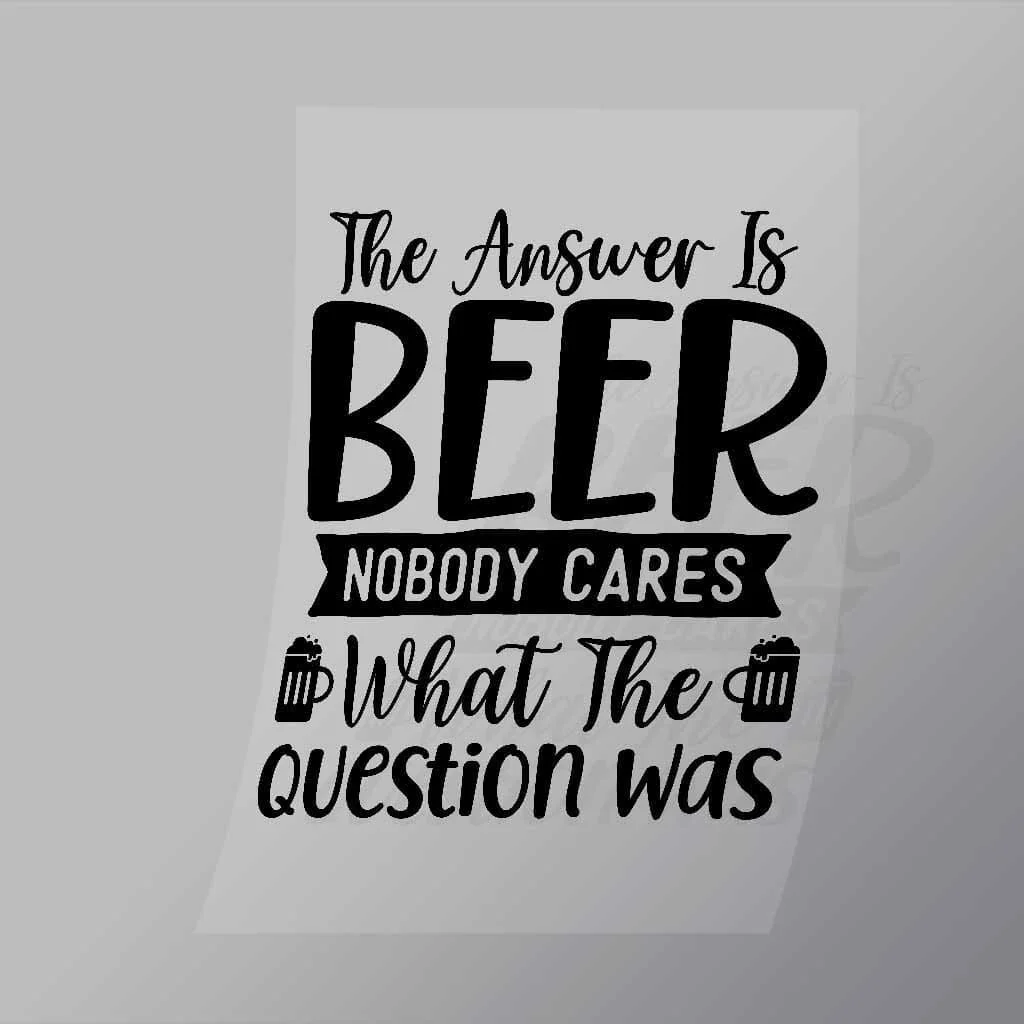 A great The Answer Is Beer Black DTF (Direct to Film) Transfer available in multiple sizes. (Beased on width at artwork aspect ratio)
