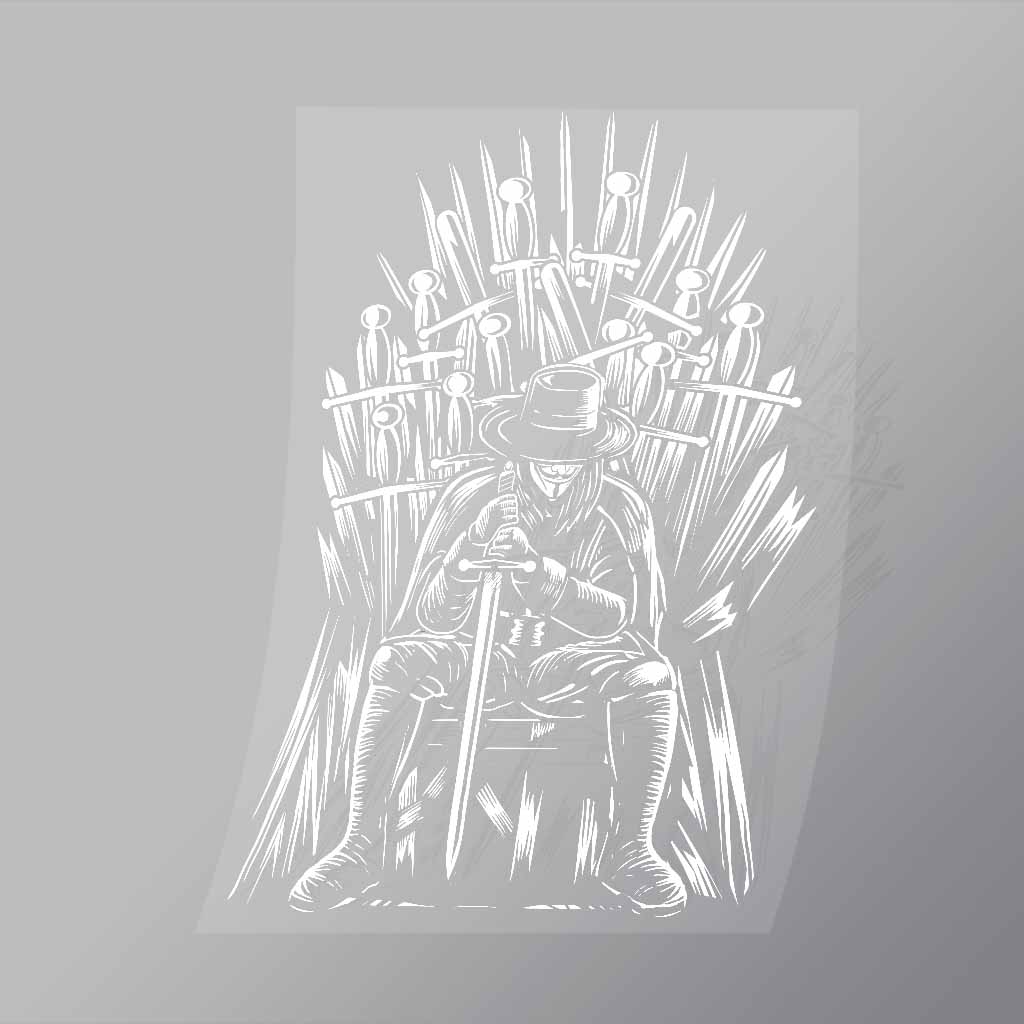 A great The Thrones Of Vendetta DTF (Direct to Film) Transfer available in multiple sizes. (Beased on width at artwork aspect ratio)