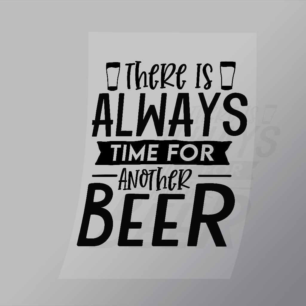 A great There Is Always Time For Another Beer Black DTF (Direct to Film) Transfer available in multiple sizes. (Beased on width at artwork aspect ratio)