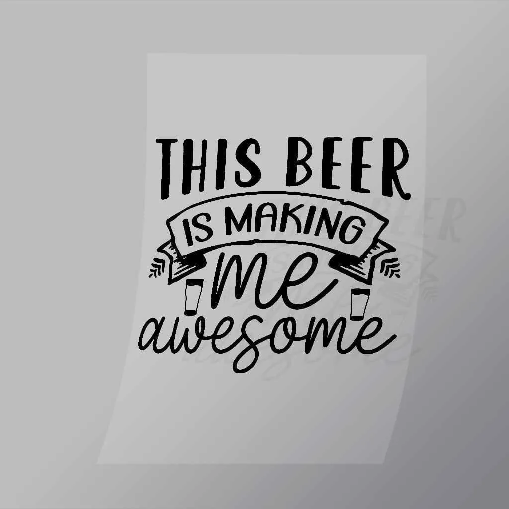 A great This Beer Is Making Me Awesome Black DTF (Direct to Film) Transfer available in multiple sizes. (Beased on width at artwork aspect ratio)