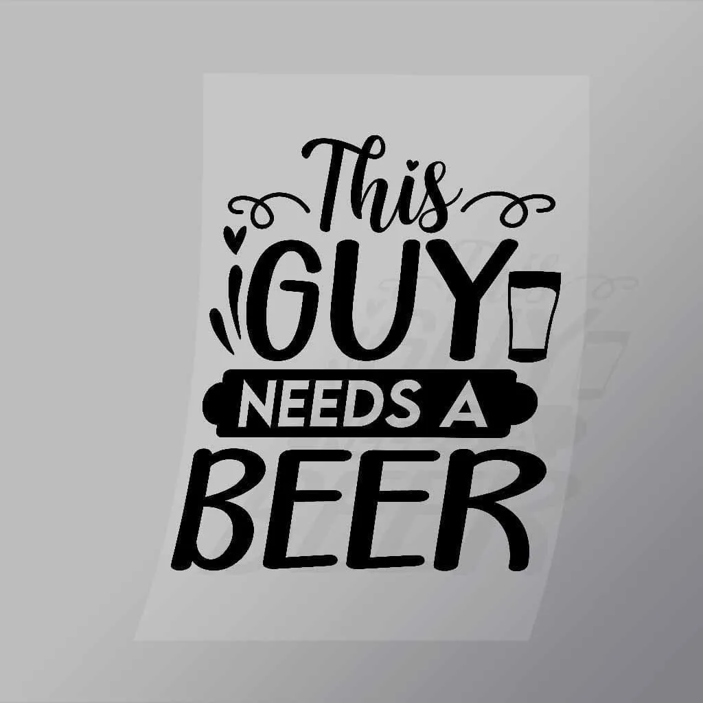 A great This Guy Needs A Beer Black DTF (Direct to Film) Transfer available in multiple sizes. (Beased on width at artwork aspect ratio)