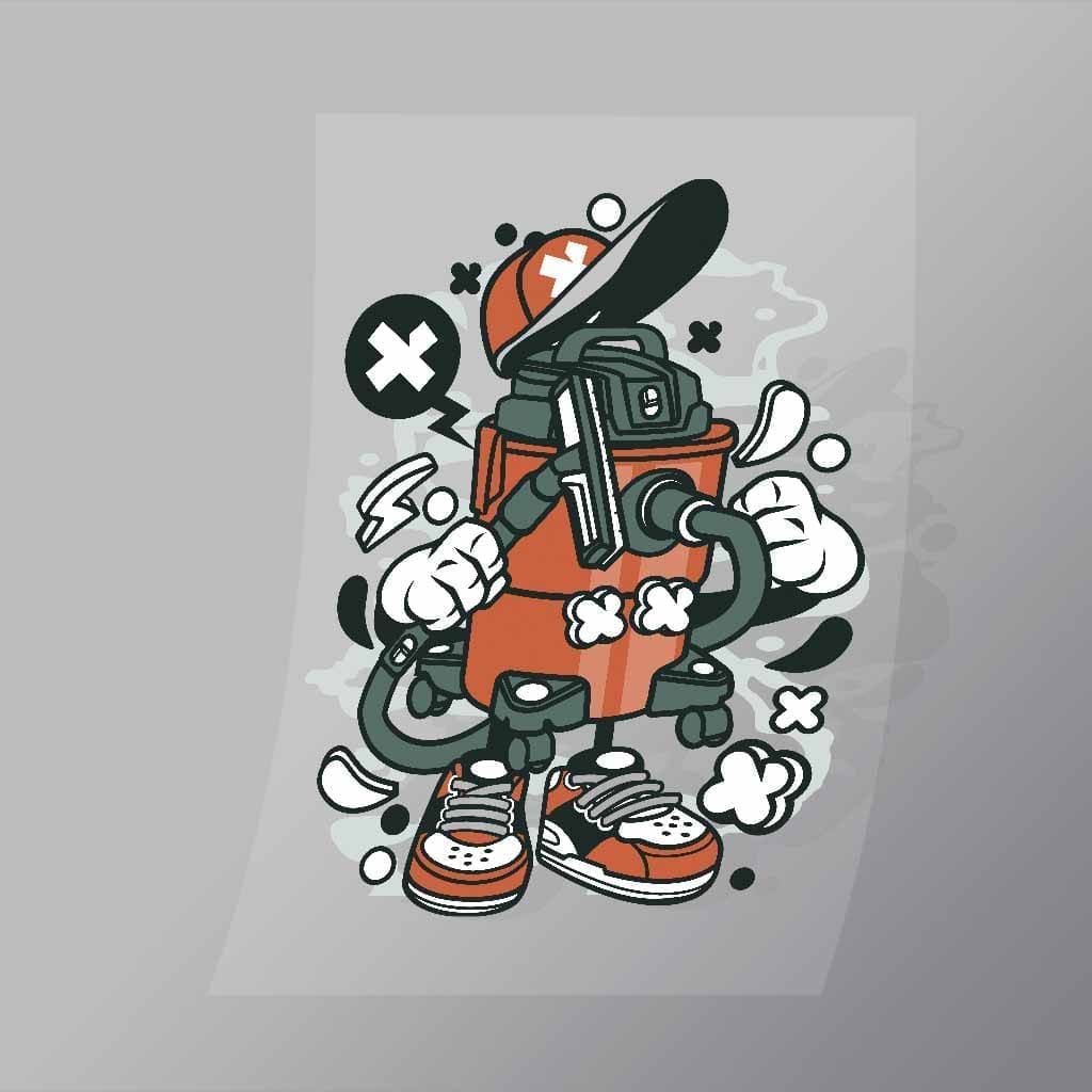 A great Vacum Cleaner DTF (Direct to Film) Transfer available in multiple sizes. (Beased on width at artwork aspect ratio)