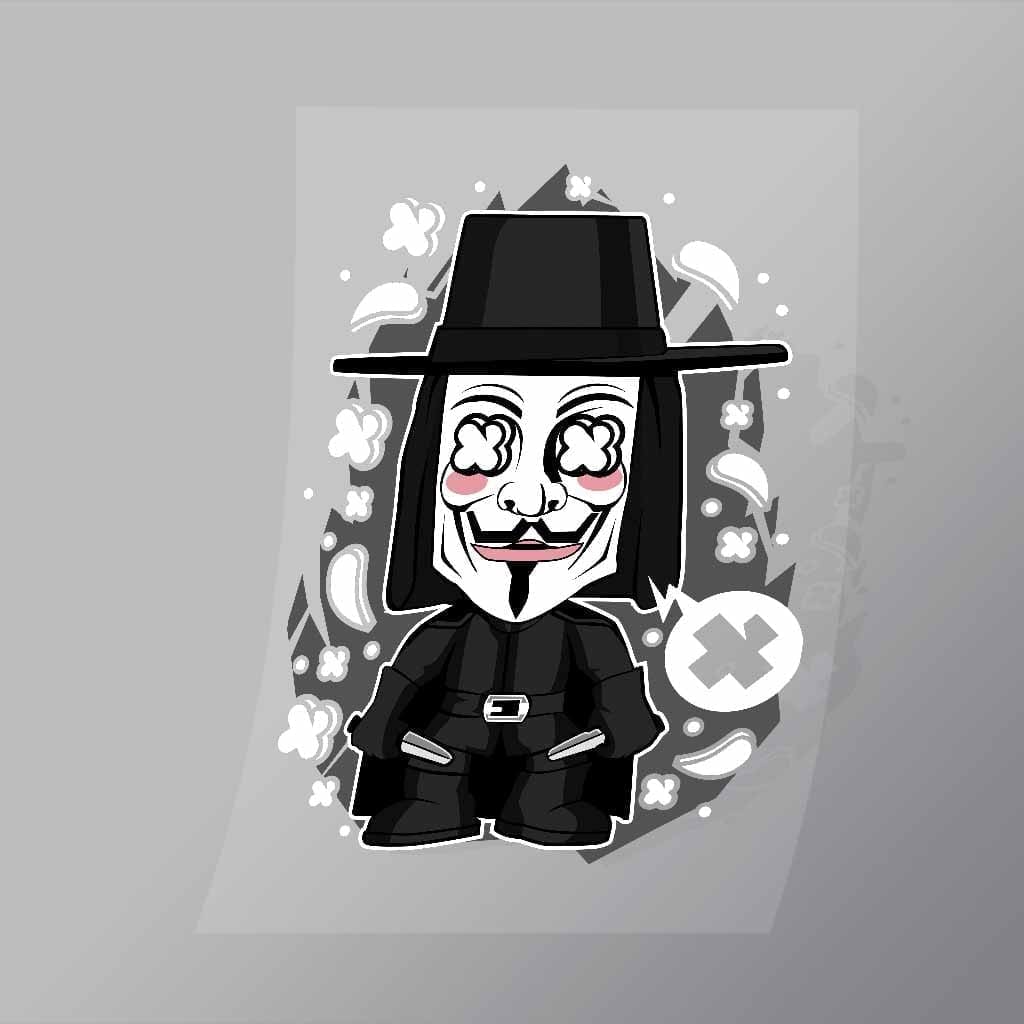 A great Vendetta DTF (Direct to Film) Transfer available in multiple sizes. (Beased on width at artwork aspect ratio)
