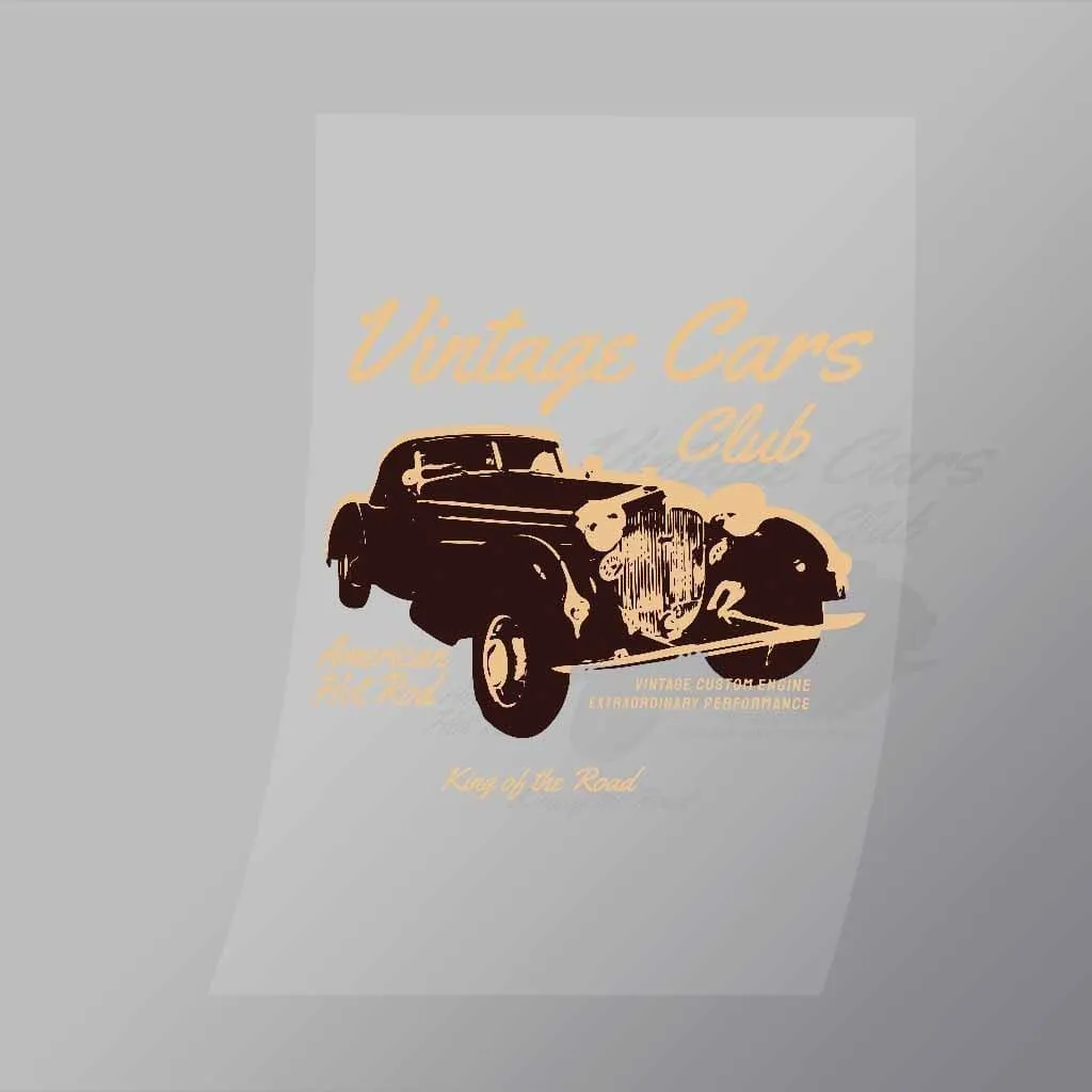 A great Vintage Cars Club DTF (Direct to Film) Transfer available in multiple sizes. (Beased on width at artwork aspect ratio)