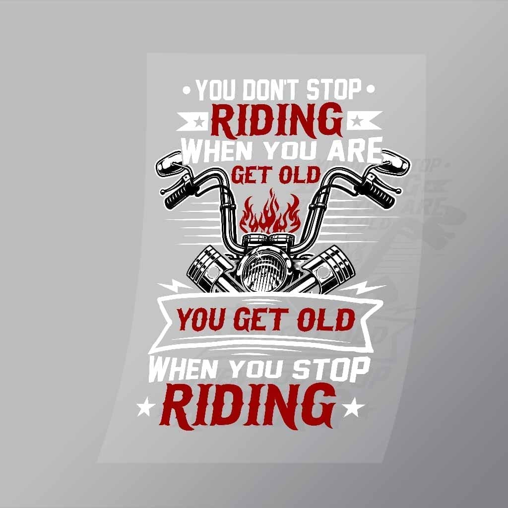 You Do Not Stop Riding When You Are Get Old DTF Apparel Transfer