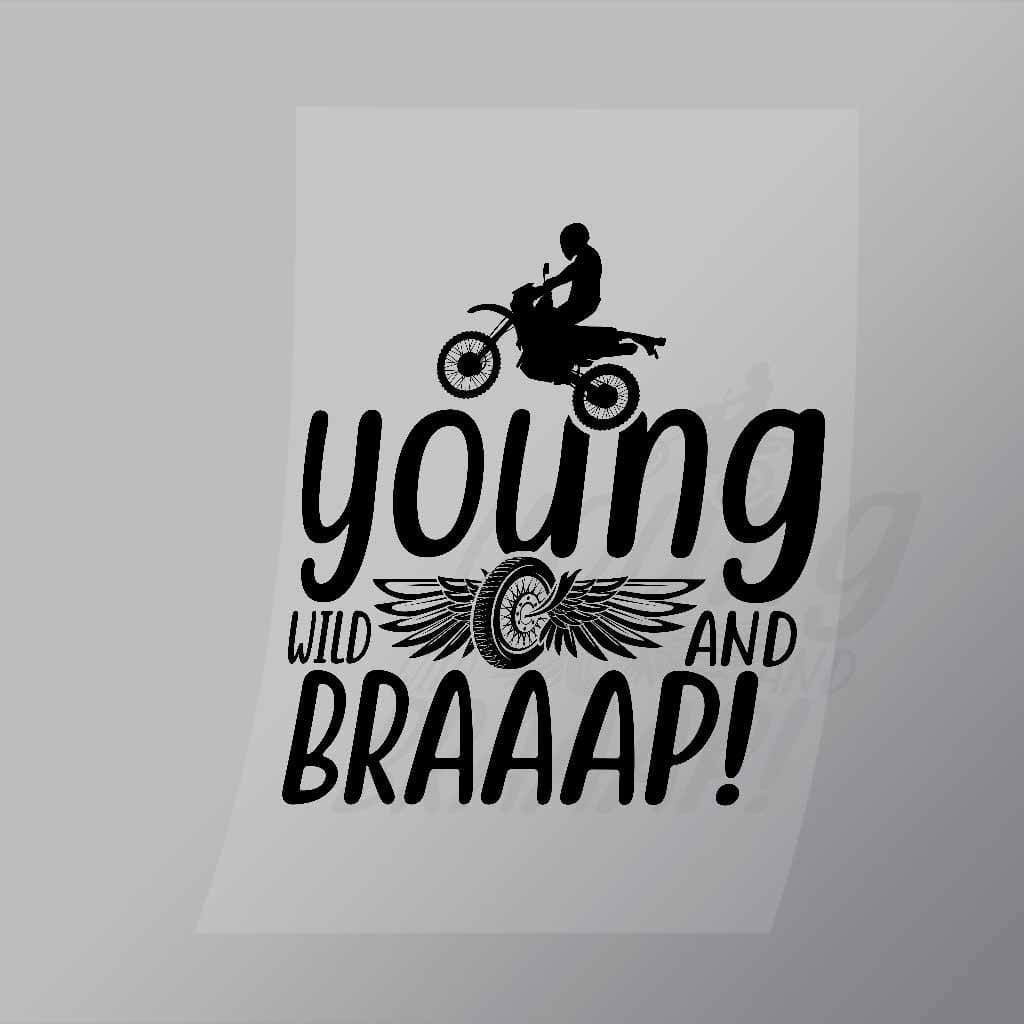 A great Young Wild And Braaap DTF (Direct to Film) Transfer available in multiple sizes. (Beased on width at artwork aspect ratio)