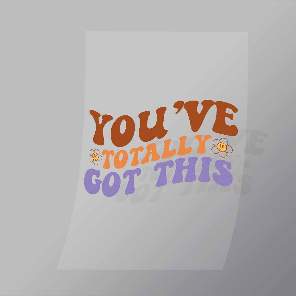 A great Youve Totally Got This DTF (Direct to Film) Transfer available in multiple sizes. (Beased on width at artwork aspect ratio)